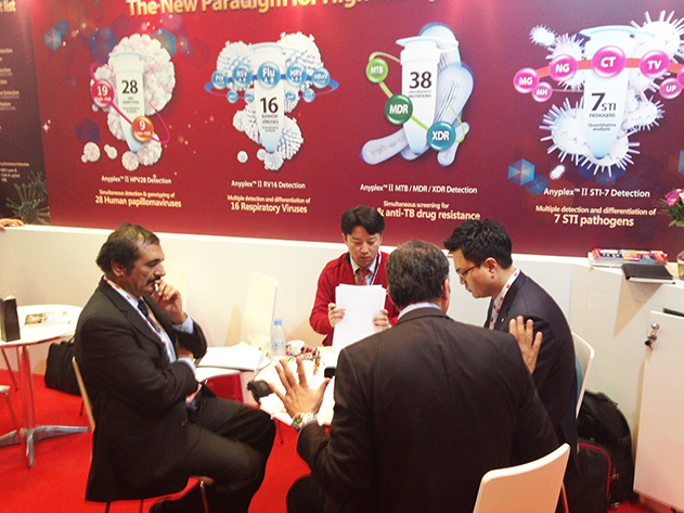 씨젠은 실시간 동시다중 유전자 증폭 기술인 TOCE™를 적용한 주요 5대 분자진단 제품인 호흡기 바이러스 16종 검사제품, 호흡기 박테리아 5종 검사제품, 결핵 및 1,2차 약제내성 검사 제품, 자궁경부암 원인바이러스 28종 검사, 성 매개 감염 원인균 7종 검사 제품 을 선보였다. 또한, 샘플 추출에서 유전자 증폭, 결과 분석까지 자동화 하여 검사 과정의 수작업과 검사시간을 줄여주는 자동화 시스템을 현지 주요 파트너인 사우디아라비아 대리점의 도움으로 부스에 세팅하여 전시효과를 높였다.