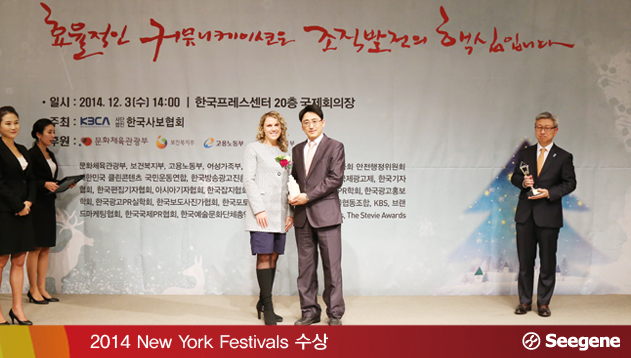 2014년 12월 3일 한국프레스센터 국제회의실에서는 씨젠의 자궁경부암 캠페인 광고가? New York Festivals 해외특별상을 수상 하였다. 한국사보협회가 주관하는 2014 대한민국 커뮤니케이션 대상에서 뉴욕페스티벌(NYF)?해외특별부문에서 수상한 것이다.?대한민국을 대표하는 본 시상식에서는 해마다 해외부문상으로 IBS와 NYF?부분을?마련하여 시상을 하고 있다.