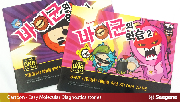‘바이균의 역습’ 만화책은 이러한 ‘분자진단’이라는 용어만을 설명하지 않고 바이러스와 세균(이하 바이균)들 각각의 대표 캐릭터들이 인간세계를 공략하는 과정에서 감염 경로와 위험요소들을 소개하고 있어 질병을 이해하고 또 한편 분자진단 기술이 얼마나 유용하고 정확하게 도움이 되는지 소개하여 주고 있다. 만화 속 바이균 캐릭터 각각의 행동 유형을 통해 어려운 이름들의 구별은 물론 원하는 질병 검사 방향에 대한 국민의 알 권리를 찾아주려 제작되었다.