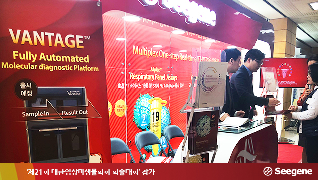 씨젠은 이번 학회를 통해서 하나의 검사 시스템으로 호흡기, 소화기, 약제내성 등 다양한 감염성 질환 관련 분자진단 검사를 할 수 있는 ‘올인원(All-in-One) 플랫폼’을 선보였다. 특히, 이 검사 플랫폼은 하나의 프로토콜로 혈액, 소변, 스왑, 객담 등 다양한 검체에서 핵산 추출을 할 수 있을 뿐만 아니라 피시알 셋업(PCR setup) 전 과정을 자동화하여 검사의 편의성과 신뢰도를 극대화하였다. 또한, 바코드 시스템에 입력된 샘플 정보부터 결과까지 검사 전 과정의 데이터를 확인할 수 있는 프로그램을 갖추어 검사 결과 조회 및 환자 정보 관리를 편리하게 해준다.